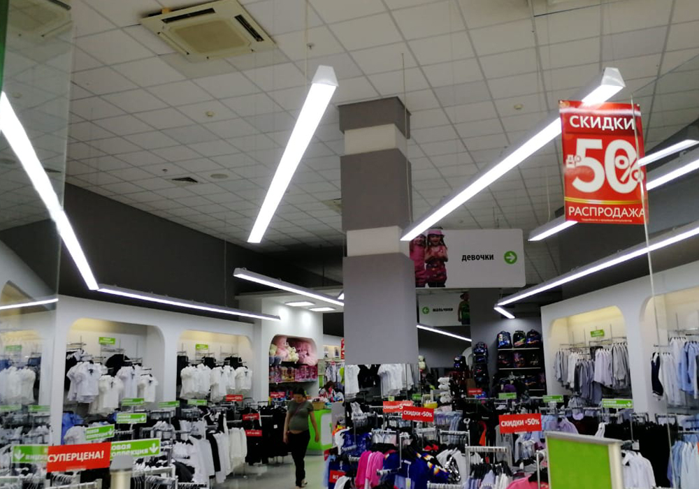 Задача: Освещение торговых залов с соблюдением всех норм освещенности.